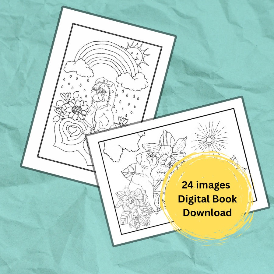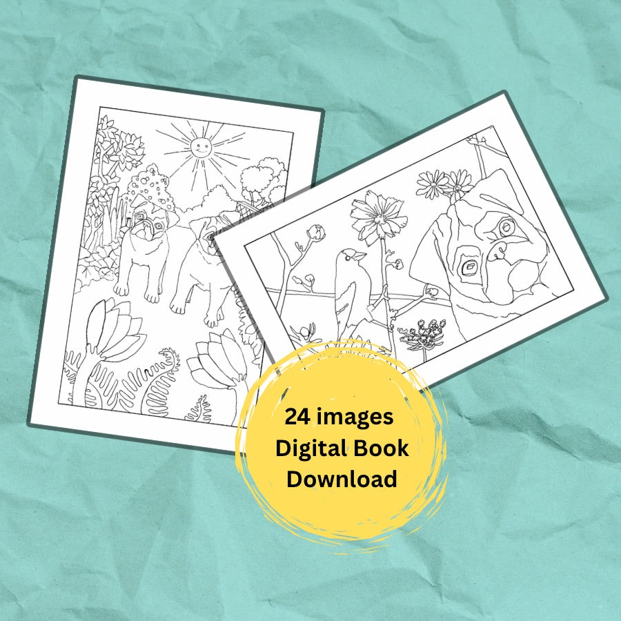 This delightful collection features 24 hand-drawn original designs of playful pugs surrounded by intricate florals, inspired by a hopeful, storytelling fantasy world. Each illustration invites you to relax, unwind, and creatively connect Step with a sense of wonder.